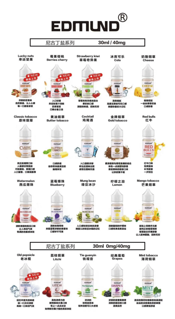 首頁 - 電子煙煙油 - EDMOUND歐姆煙油 高濃度30ML40MG 買五送一 🔍 EDMOUND歐姆煙油 高濃度30ML40MG 買五送一NT$349 特惠活動「煙油買五送一」可與活動煙油混搭購買,兩罐起出。數量有限,抓緊搶購吧。 EDM OUND歐姆煙油活動:買五送一,可隨意混搭活動煙油品牌,送的口味可備註或加line告知客服 煙油2瓶起出貨,不滿兩瓶不出貨,領取包裹時請認準我們提供的取件碼並錄製拆箱影片!收到商品有任何問題聯繫客服。 ⚠️由於不可控因素!所有煙油到貨時間需要5-7天左右才能到門市,週知!! ⚠️ 口味 請選取一個選項鐵觀音可樂堅果奶酪菸草紅牛芒果草莓奇異果莓果樱桃葡萄薄荷藍莓爆珠西瓜金牌煙草阿佩羅雞尾酒鐵觀音鐵觀音可樂可樂堅果堅果奶酪菸草奶酪菸草紅牛紅牛芒果芒果草莓奇異果草莓奇異果莓果樱桃莓果樱桃葡萄葡萄薄荷薄荷藍莓爆珠藍莓爆珠西瓜西瓜金牌煙草金牌煙草阿佩羅雞尾酒阿佩羅雞尾酒清除 EDMOUND歐姆煙油 高濃度30ML40MG 買五送一 數量 加入購物車 貨號: 不提供 分類: 電子煙煙油, 進口小煙油 標籤: 小煙煙油, 歐姆, 活動煙油, 活動產品, 買五送一, 電子煙煙油 在 Line 分享 在 Facebook 分享 在 X (Twitter) 分享 在 Telegram 分享 描述 評價 (0) EDM OUND歐姆電子煙油|順滑入口持久回味 採用高品質丁鹽尼古丁帶來柔順吸入與強勁擊喉感,搭配從清爽、甜香到濃郁的多樣口味,30ml大容量減少補充頻率,並以嚴選安全原料經嚴格品控,讓每一口都安心滿足。 口味速覽 芒果:香氣濃郁且帶有野性,甜度適中,過喉時帶有明顯煙草感,層次分明。 薄荷煙草:開瓶即聞薄荷清香,入口冰涼順滑,融合淡淡煙草味,清爽解膩。 荔枝:甜而不膩,荔枝香氣飽滿,帶有微涼感,果香迷人。 草莓:酸甜適口,香氣濃厚,清新可人,適合喜甜口味者。 冰草莓:在草莓香甜中加入冰感元素,夏日清涼必備。 藍莓:酸甜平衡,果香自然,收尾帶有淡淡涼意。 香草:香甜醇厚,甜度恰到好處,口感圓潤。 使用指南 將煙油注入霧化器,調整至合適功率後,即可盡情享受濃郁順滑的風味體驗。 常見問題 尼古丁含量 40mg/ml,高濃度丁鹽尼古丁。 適用設備 適合丁鹽小煙霧化器,不建議用於大煙霧化器。 保存期限 約1年,建議存放於陰涼乾燥處。 商品評價 目前沒有評價。 搶先評價 “EDMOUND歐姆煙油 高濃度30ML40MG 買五送一”取消回覆發佈留言必須填寫的電子郵件地址不會公開。 必填欄位標示為 *您的評分 * 評分… 完美 很好 一般 不錯 很差 名稱 *電子郵件 *Review Title您的評價 * 在瀏覽器中儲存顯示名稱、電子郵件地址及個人網站網址,以供下次發佈留言時使用。 送出 相關商品 SAMELE 冰釀小煙油|30ML/30mg 清涼暢快口感 NT$530 選擇口味 此產品有多種款式。 可在產品頁面選擇選項 ILIA哩亞 YOKO系列鹽煙油|30ml容量|35mg濃度|多口味任選 NT$500 選擇口味 此產品有多種款式。 可在產品頁面選擇選項 FORMOSA 煙油|福爾摩沙系列小煙專用|30ML 瓶裝|711到付 NT$550 選擇口味 此產品有多種款式。 可在產品頁面選擇選項 BLVK UNICORN 大煙油|美國進口獨角獸系列|3MG順滑口感 NT$700 選擇口味 此產品有多種款式。 可在產品頁面選擇選項 GENESIS 創世紀煙油 小煙專用|30ml 裝|多設備適配 NT$500 選擇口味 此產品有多種款式。 可在產品頁面選擇選項 WorldPastry Cop 小煙專用煙油 30ml|濃郁風味|711 到付 NT$500 選擇口味 此產品有多種款式。 可在產品頁面選擇選項